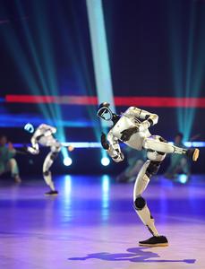 (260325) -- TIANJIN, 25 marzo, 2026 (Xinhua) -- Robots humanoides realizan una presentación durante la ceremonia de inauguración del X Campeonato Mundial Junior de Wushu, en Tianjin, en el norte de China, el 25 de marzo de 2026. (Xinhua/Sun Fanyue) (ah) (ra) (ce)
