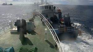 (251012) -- BEIJING, 12 octubre, 2025 (Xinhua) -- El buque filipino 3003 ingresa ilegalmente a las aguas cercanas a Tiexian Jiao, en el Mar Meridional de China, el 12 de octubre de 2025. La Guardia Costera de China (GCCh) expulsó legalmente el domingo a buques oficiales filipinos que habían invadido ilegalmente las aguas cercanas a Tiexian Jiao, en el Mar Meridional de China, según informó un portavoz de la GCCh. Los buques oficiales de Filipinas 3002 y 3003 ingresaron ilegalmente en las aguas cercanas a Tiexian Jiao, en Nansha Qundao de China, sin el permiso del Gobierno chino, señaló el portavoz de la GCCh Liu Dejun. Liu agregó que a las 09:19 horas del domingo el buque filipino 3003 ignoró las repetidas advertencias de la parte china y se acercó peligrosamente al buque 21559 de la GCCh, que estaba llevando a cabo actividades normales de aplicación de la ley para la protección de los derechos, lo que resultó en una colisión. (Xinhua/GCCh) (rtg) (ah)