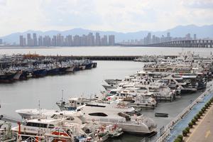 (250708) -- BEIJING, 8 julio, 2025 (Xinhua) -- Imagen del 6 de julio de 2025 de barcos atracados en un puerto para resguardarse de un tifón que se aproxima, en Xiamen, en la provincia de Fujian, en el sureste de China. El Ministerio de Recursos Hídricos de China activó el lunes una respuesta a emergencias de nivel IV a las inundaciones en las provincias orientales de Zhejiang y Fujian a medida que el tifón Danas se aproxima. (Xinhua/Zeng Demeng) (jg) (ra)