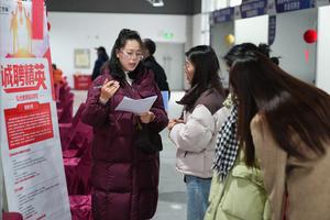 (250207) -- BEIJING, 7 febrero, 2025 (Xinhua) -- Una reclutadora (i) presenta los requisitos de un puesto de trabajo a posibles candidatas en una feria de empleo, en Changsha, en la provincia de Hunan, en el centro de China, el 7 de febrero de 2025. Al finalizar las vacaciones de la Fiesta de la Primavera, se realizan diversas ferias de empleo en todo el país. (Xinhua/Chen Zeguo) (oa) (ra) (vf)