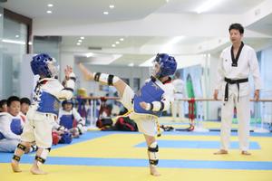 (250712) -- BEIJING, 12 julio, 2025 (Xinhua) -- Imagen del 10 de julio de 2025 de niños practicando taekwondo, en el distrito de Shizhong de Leshan, en la provincia de Sichuan, en el suroeste de China. Los niños de todo el país están enriqueciendo sus vacaciones de verano a través de actividades coloridas. (Xinhua/Li Huashi) (rtg) (da)