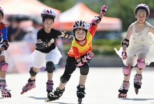(250705) -- BEIJING, 5 julio, 2025 (Xinhua) -- Niñas participan en una competencia de patinaje sobre ruedas, en la ciudad de Zaozhuang, en la provincia de Shandong, en el este de China, el 5 de julio de 2025. (Xinhua/Li Zhijun) (jg) (da)