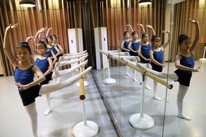 (250705) -- BEIJING, 5 julio, 2025 (Xinhua) -- Alumnas aprenden a bailar en una escuela de danza, en la ciudad de Zaozhuang, en la provincia de Shandong, en el este de China, el 5 de julio de 2025. (Xinhua/Chen Bin) (jg) (da)