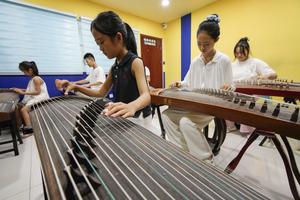 (250810) -- BEIJING, 10 agosto, 2025 (Xinhua) -- Niños aprenden a tocar el Guzheng, un instrumento musical tradicional chino, en la ciudad de Zunhua, en la provincia de Hebei, en el norte de China, el 10 de agosto de 2025. Niños de toda China participan en diversas actividades para pasar el verano. (Xinhua/Liu Mancang) (oa) (da)