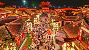 (250811) -- BEIJING, 11 agosto, 2025 (Xinhua) -- Imagen tomada con un dron el 9 de agosto de 2025 de turistas visitando un punto escénico en la noche, en la ciudad de Leling, en la provincia de Shandong, en el este de China. Las áreas escénicas a lo largo de China han entrado a la temporada alta de turismo durante las vacaciones de verano. (Xinhua/Jia Peng) (rtg) (ah) (ce)