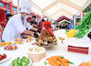 (251001) -- BEIJING, 1 octubre, 2025 (Xinhua) -- Un chef prepara platos para turistas durante un concurso culinario en un festival de cultura gastronómica del té matutino, en la ciudad de Wuzhong, en la región autónoma de la etnia hui de Ningxia, en el noroeste de China, el 1 de octubre de 2025. Este año, con el Festival de Medio Otoño de China coincidiendo con el Día Nacional, unas vacaciones de ocho días que comienzan el miércoles están destinadas a dinamizar las economías locales a través de un aumento en el turismo cultural. (Xinhua/Feng Kaihua) (jg) (ra) (ce)