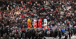 (250205) -- BEIJING, 5 febrero, 2025 (Xinhua) -- Imagen del 29 de enero de 2025 de turistas observando una danza del león, en el distrito de Tancheng de Linyi, en la provincia de Shandong, en el este de China. China logró un récord de 501 millones de viajes de turistas nacionales durante los ocho días de las vacaciones con motivo de la Fiesta de la Primavera, que terminaron el martes, lo que supone un aumento interanual del 5,9 por ciento, según datos publicados el miércoles por el Ministerio de Cultura y Turismo. Los turistas gastaron más de 677.000 millones de yuanes (94.430 millones de dólares) en sus viajes por las diferentes regiones del país durante la temporada vacacional, lo que representa un aumento interanual del 7 por ciento, de acuerdo con la misma fuente. (Xinhua/Zhang Chunlei) (ah) (ra) (vf)