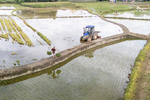 (250721) — BEIJING, 21 julio, 2025 (Xinhua) — Vista aérea tomada con un dron el 21 de julio de 2025 de un agricultor transportando plántulas de arroz, en Loudi, en la provincia de Hunan, en el centro de China. Los agricultores de todo el país están ocupados con la producción agraria en la temporada agrícola alrededor de Dashu, o el Gran Calor, el duodécimo de los 24 términos solares tradicionales chinos que cae el 22 de julio de este año. (Xinhua/Wu Yonghua) (oa) (ah)