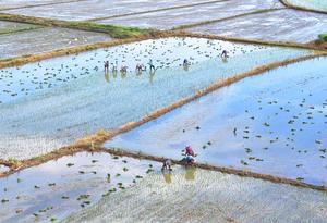 (250721) -- BEIJING, 21 julio, 2025 (Xinhua) -- Vista aérea tomada con un dron el 21 de julio de 2025 de aldeanos trasplantando plántulas de arroz, en Hengyang, en la provincia de Hunan, en el centro de China. Los agricultores de todo el país están ocupados con la producción agraria en la temporada agrícola alrededor de Dashu, o el Gran Calor, el duodécimo de los 24 términos solares tradicionales chinos que cae el 22 de julio de este año. (Xinhua/Cao Zhengping) (oa) (ah)