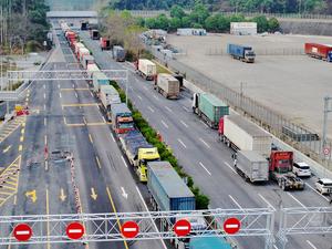 (250302) -- NANNING, 2 marzo, 2025 (Xinhua) -- Vista aérea tomada con un dron del 1 de marzo de 2025 de vehículos esperando a pasar a través del Puerto Youyiguan, o Paso de la Amistad, en la ciudad de Pingxiang, en la región autónoma zhuang de Guangxi, en el sur de China. Con el auge de la cooperación económica y comercial entre China y Vietnam, los principales puertos fronterizos son testigos de un aumento del tráfico fronterizo. (Xinhua/Zhou Hua) (rtg) (da)