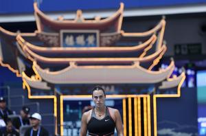 (251010) -- WUHAN, 10 octubre, 2025 (Xinhua) -- Aryna Sabalenka reacciona durante el partido de cuartos de final de individuales femeninos entre Elena Rybakina, de Kazajistán, y Aryna Sabalenka, de Bielorrusia, en el torneo de tenis Wuhan Open 2025, en Wuhan, en la provincia de Hubei, en el centro de China, el 10 de octubre de 2025. (Xinhua/Bai Xuefei) (rtg) (ra) (vf)