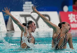 (250614) -- XI'AN, 14 junio, 2025 (Xinhua) -- Marla Fernanda Arellano Germes/Itzamary González Cuéllar, de México, compiten durante la final de dúo libre femenino en la Superfinal de la Copa del Mundo de Natación Artística 2025 de World Aquatics, en Xi'an, en la provincia de Shaanxi, en el noroeste de China, el 14 de junio de 2025. (Xinhua/Li Yibo) (rtg) (da)