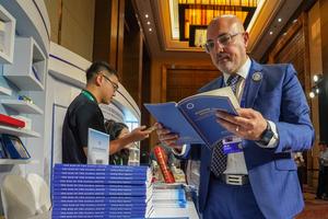(250906) — KUNMING, 6 septiembre, 2025 (Xinhua) — Un invitado lee un informe de un grupo de expertos titulado «Responder a las preguntas de nuestro tiempo: la importancia global y el valor práctico de los bienes intelectuales públicos de China», durante la ceremonia de apertura del Foro de Medios de Comunicación y Think Tanks del Sur Global 2025, en Kunming, en la provincia de Yunnan, en el suroeste de China, el 6 de septiembre de 2025. El informe fue dado a conocer el sábado durante la ceremonia de apertura del Foro de Medios de Comunicación y Think Tanks del Sur Global 2025 por el Instituto Xinhua, un grupo de expertos afiliado a la Agencia de Noticias Xinhua. (Xinhua/Gao Yongwei) (jg) (da)