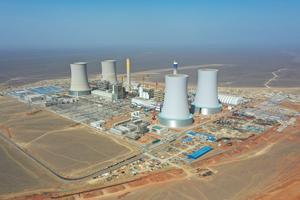 (250610) -- HAMI, 10 junio, 2025 (Xinhua) -- Vista aérea tomada con un dron el 22 de marzo de 2025 de una planta de energía térmica como parte del proyecto de transmisión de corriente continua de ultra alta tensión de ±800 kV Hami-Chongqing, en Hami, en la región autónoma uygur de Xinjiang, en el noroeste de China. La Corporación Estatal de la Red Eléctrica de China anunció el martes la entrada en operación del proyecto de transmisión de corriente continua de ultra alta tensión de ±800 kV que une Hami, en el este de Xinjiang, con la municipalidad de Chongqing, en el suroeste de China. Este es el tercer gran proyecto de China para transmitir electricidad desde Xinjiang, rica en energía, hacia otras partes del país. (Xinhua/Ding Lei) (jg) (ra) (vf)