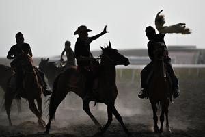 (250805) -- YINING, 5 agosto, 2025 (Xinhua) -- Imagen del 29 de julio de 2025 de jinetes realizando una presentación, en el distrito de Zhaosu de la prefectura autónoma kazaja de Ili, en la región autónoma de la etnia uygur de Xinjiang, en el noroeste de China. La prefectura autónoma kazaja de Ili, ha iniciado su temporada alta de turismo. Los paisajes naturales y los sitios culturales únicos de la región han atraído a un gran número de visitantes. (Xinhua/Xin Yuewei) (oa) (ah) (vf)