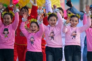 (250124) — KASHGAR, 24 enero, 2025 (Xinhua) — Imagen del 22 de enero de 2025 de niñas presentándose durante una «gala de aldea», en el distrito de Shache de Kashgar, en la región autónoma uygur de Xinjiang, en el noroeste de China. La «gala de aldea», que incluyó ferias gastronómicas, presentaciones de canciones y danzas tradicionales, exhibiciones de patrimonio cultural inmaterial y eventos deportivos, se llevó a cabo aquí con motivo el próximo Festival de la Primavera, o Año Nuevo Lunar chino. (Xinhua/Ding Lei) (jg) (da) (ce)