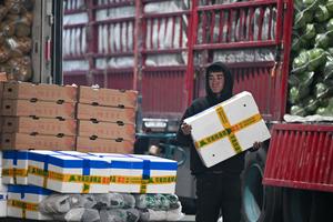 (260121) -- URUMQI, 21 enero, 2026 (Xinhua) -- Imagen del 19 de enero de 2026 de un vendedor transportando verduras frescas en el mercado mayorista de productos agrícolas de Jiuding, en Urumqi, en la región autónoma uygur de Xinjiang, en el noroeste de China. Una ola de frío masiva azotó recientemente la región autónoma uygur de Xinjiang, en el noroeste de China, provocando fuertes descensos de temperatura. Las autoridades de todos los sectores de la región han trabajado en coordinación para garantizar un amplio suministro de verduras y frutas. (Xinhua/Ding Lei) (jg) (da) (vf)