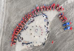 (250316) -- LHASA, 16 marzo, 2025 (Xinhua) -- Vista aérea tomada con un dron del 16 de marzo de 2025 de una ceremonia marcando el comienzo de la agricultura de primavera, en el poblado de Quxar, en el distrito de Lnaze, en la región autónoma de Xizang, en el suroeste de China. Ceremonias para conmemorar el comienzo de la agricultura de primavera se llevaron a cabo a lo largo de Xizang el domingo. La ceremonia tiene gran importancia, ya que marca el inicio de la temporada agrícola de un nuevo año y sirve como oración para pedir buen tiempo y cosechas abundantes. Se considera un ritual importante en las regiones agrícolas de Xizang. (Xinhua/Jiang Fan) (rtg) (ah)