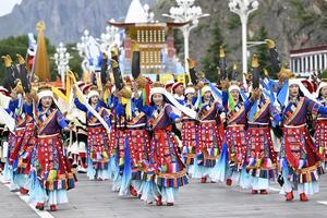 (250821) -- LHASA, 21 agosto, 2025 (Xinhua) -- Personas participan en un desfile masivo durante una gran reunión para conmemorar el 60º aniversario de la fundación de la región autónoma de Xizang, en Lhasa, en la región autónoma de Xizang, en el suroeste de China, el 21 de agosto de 2025. Unos 20.000 funcionarios locales y personas de todos los grupos étnicos y todos los ámbitos de la sociedad se unieron en la celebración. (Xinhua/Shen Hong) (da) (ra) (ce)