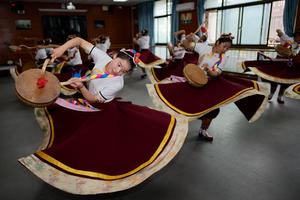 (250916) -- LHASA, 16 septiembre, 2025 (Xinhua) -- Imagen del 9 de septiembre de 2025 de estudiantes practicando la danza Reba en la escuela secundaria vocacional y técnica no. 2, en Lhasa, en la región autónoma de Xizang, en el suroeste de China. La danza Reba es una forma de danza con tambores, y una mezcla de artes escénicas, que integra narración de cuentos, canto, baile y acrobacias. (Xinhua/Zhang Xiaoyu) (oa) (ah) (vf)