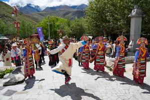 (250912) -- LHASA, 12 septiembre, 2025 (Xinhua) -- Residentes locales realizan una presentación en la ceremonia de inauguración de un festival de turismo que presenta la cultura del incienso tradicional tibetano, en el distrito de Nyemo de Lhasa, en la región autónoma de Xizang, en el suroeste de China, el 12 de septiembre de 2025. (Xinhua/Jigme Dorje) (jg) (da) (vf)