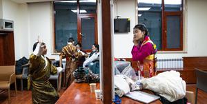 (250212) -- LHASA, 12 febrero, 2025 (Xinhua) -- Imagen del 11 de febrero de 2025 de jóvenes actores realizando preparativos para una obra de teatro infantil en el Centro de Arte de la Opera Tibetana, en Lhasa, en la región autónoma de Xizang, en el suroeste de China. La primera obra de teatro infantil de Xizang de ópera tibetana, una forma de arte tibetano que tiene una historia de más de 600 años, se presentó el martes en el Centro de Arte de la Opera Tibetana en Lhasa. Un total de cuarenta y cuatro jóvenes actores participaron en la presentación, con el más pequeño de tan solo 5 años. (Xinhua/Tenzin Nyida) (jg) (da) (vf)