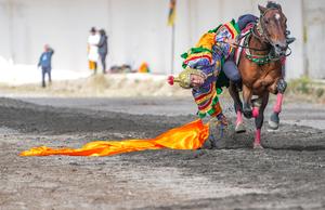 (250905) -- NAGQU, 5 septiembre, 2025 (Xinhua) -- Un jinete realiza una presentación ecuestre en la ceremonia de apertura de la edición 2025 de un festival tradicional de carreras de caballos, en Nagqu, en la región autónoma de Xizang, en el suroeste de China, el 5 de septiembre de 2025. El festival de tres días de duración, un evento tradicional del norte de la meseta tibetana, comenzó el viernes en Nagqu. El festival incluye competencias deportivas, presentaciones artísticas y actividades de turismo cultural, atrayendo a una gran cantidad de residentes y visitantes. (Xinhua/Tenzin Nyida) (oa) (ra) (vf)