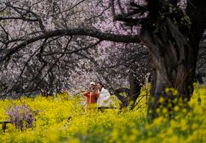 (250409) -- LHASA, 9 abril, 2025 (Xinhua) -- Imagen del 2 de abril de 2025 de turistas disfrutando de la vista de las flores de durazno, en Nyingchi, en la región autónoma de Xizang, en el suroeste de China. En los últimos años, Nyingchi ha logrado integrar la observación de las flores y el desarrollo turístico, buscando transformar el paisaje ecológico en valor económico. Del 4 al 6 de abril de 2025, la ciudad recibió aproximadamente 208.600 turistas, un aumento interanual del 20,58 por ciento, con ingresos por turismo alcanzando los 150 millones de yuanes, un aumento interanual del 37,62 por ciento, de acuerdo con las estadísticas. (Xinhua/Jigme Dorje) (jg) (da) (ce)