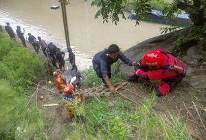 (250708) — XIGAZE, 8 julio, 2025 (Xinhua) — Rescatistas evacuan a personas varadas del sitio de un deslizamiento de tierra, en la zona del puerto de Gyirong, en el poblado de Gyirong de Xigaze, en la región autónoma de Xizang, en el suroeste de China, el 8 de julio de 2025. Un total de 17 personas han sido reportadas como desaparecidas tras un deslizamiento de tierra ocurrido en la mañana del martes en el área del puerto de Gyirong, en la frontera entre China y Nepal, informaron las autoridades locales. (Xinhua/Xu Dafu) (jg) (ra) (ce)