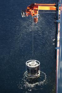(250926) -- SHANGHAI, 26 septiembre, 2025 (Xinhua) -- Imagen del 8 de septiembre de 2025 de un sensor de conductividad, temperatura y profundidad siendo recuperado por el rompehielos de investigación chino Xuelong 2. El rompehielos de investigación chino Xuelong 2, o Dragón de Nieve 2, llegó a Shanghai el viernes, marcando la culminación de la mayor expedición científica del país al Océano Ártico hasta la fecha. (Xinhua/Liu Shiping) (oa) (ra) (ce)