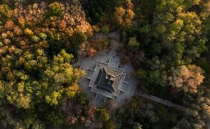 (251029) — YINCHUAN, 29 octubre, 2025 (Xinhua) — Vista aérea tomada con un dron el 28 de octubre de 2025 del paisaje otoñal del parque Haibao, en Yinchuan, en la región autónoma de la etnia hui de Ningxia, en el noroeste de China. Yinchuan, conocida como ciudad internacional de humedales, cuenta con casi 200 lagos naturales y humedales pantanosos, que cubren una superficie de 53.100 hectáreas. (Xinhua/Feng Kaihua) (ah) (ra) (ce)