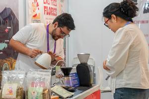(250620) -- KUNMING, 20 junio, 2025 (Xinhua) -- Un expositor (i) de El Salvador prepara café para una visitante en el Pabellón de la Industria del Café en la IX Exposición China-Sur de Asia, en Kunming, en la provincia de Yunnan, en el suroeste de China, el 20 de junio de 2025. Prominentes compañías de café de países como Panamá, El Salvador y Pakistán también han sido invitadas a la exposición. (Xinhua/Peng Yikai) (rtg) (ra) (vf)