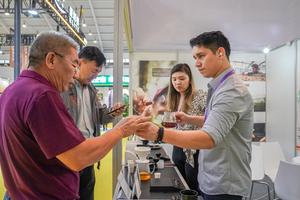 (250620) -- KUNMING, 20 junio, 2025 (Xinhua) -- Un expositor (d) de Panamá sirve café a los visitantes en el Pabellón de la Industria del Café en la IX Exposición China-Sur de Asia, en Kunming, en la provincia de Yunnan, en el suroeste de China, el 20 de junio de 2025. Prominentes compañías de café de países como Panamá, El Salvador y Pakistán también han sido invitadas a la exposición. (Xinhua/Peng Yikai) (rtg) (ra) (vf)