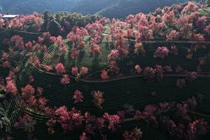 (251225) — NANJIAN, 25 diciembre, 2025 (Xinhua) — Imagen tomada con un dron el 24 de diciembre de 2025 de flores de cerezo de invierno en la montaña Wuliang, en el distrito autónomo de la etnia yi de Nanjian, en la provincia de Yunnan, en el suroeste de China. (Xinhua/Liu Lianfen) (jg) (ah)