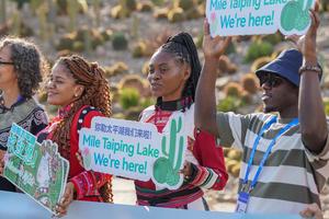 (250907) -- KUNMING, 7 septiembre, 2025 (Xinhua) -- Invitados del Foro de Medios de Comunicación y Think Tanks del Sur Global 2025 visitan el Parque de Desertificación Rocosa de la Montaña, en la ciudad de Mile, en la provincia de Yunnan, en el suroeste de China, el 7 de septiembre de 2025. El Foro de Medios de Comunicación y Think Tanks del Sur Global 2025 se inauguró el sábado en Kunming, capital de la provincia de Yunnan, en el suroeste de China. Los invitados recorrieron diferentes lugares en Yunnan el domingo. (Xinhua/Peng Yikai) (rtg) (ah)