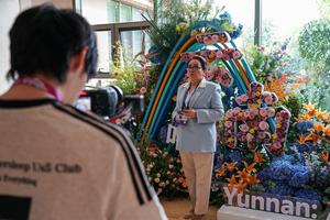 (250906) -- KUNMING, 6 septiembre, 2025 (Xinhua) -- Una invitada es entrevistada por un medio de comunicación en la sede de la ceremonia de apertura del Foro de Medios de Comunicación y Think Tanks del Sur Global 2025, en Kunming, en la provincia de Yunnan, en el suroeste de China, el 6 de septiembre de 2025. Bajo el lema "Empoderar al Sur Global, Navegar por los Cambios Globales", el foro llevó a cabo una ceremonia de apertura el sábado. (Xinhua/Xin Mengchen) (jg) (da)