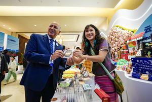 (250906) — KUNMING, 6 septiembre, 2025 (Xinhua) — Un invitado (i) se toma una fotografía con una trabajadora previo a la ceremonia de apertura del Foro de Medios de Comunicación y Think Tanks del Sur Global 2025, en Kunming, en la provincia de Yunnan, en el suroeste de China, el 6 de septiembre de 2025. Bajo el lema «Empoderar al Sur Global, Navegar por los Cambios Globales», el foro llevó a cabo una ceremonia de apertura el sábado. (Xinhua/Chen Xinbo) (jg) (da)
