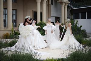 (250521) -- BEIJING, 21 mayo, 2025 (Xinhua) -- Imagen del 20 de mayo de 2025 de mujeres con vestidos de novia vistas en un centro de arte nupcial, en Kunming, en la provincia de Yunnan, en el suroeste de China. La fecha del 20 de mayo tiene un significado especial en China, ya que su pronunciación china "520" se asemeja a la frase "wo ai ni", que significa "Te amo". Es una época de alta demanda de registros matrimoniales, con largas filas en los registros matrimoniales de todo el país. (Xinhua) (jg) (vf)