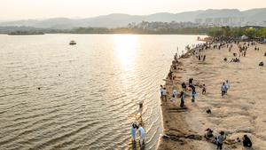 (250406) -- MILE, 6 abril, 2025 (Xinhua) -- Vista aérea tomada con un dron el 4 de abril de 2025 de turistas visitando el Parque Ecológico Huquan, en la ciudad de Mile, en la prefectura autónoma de etnias hani y yi de Honghe, en la provincia de Yunnan, en el suroeste de China. Durante las vacaciones de tres días del Festival Qingming de este año, los ciudadanos y turistas llegaron al Parque Ecológico Huquan, en el poblado de Dongfengyun, Tierra Nativa de Honghe y otros lugares de esta ciudad para disfrutar del paisaje primaveral. (Xinhua/Hu Chao) (rtg) (da)