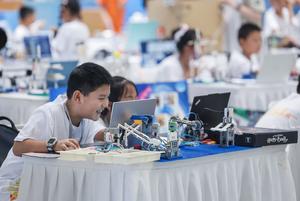(250820) -- TONGXIANG, 20 agosto, 2025 (Xinhua) -- Participantes son vistos en un concurso de diseño de electrónica innovadora durante las finales del Concurso de Alfabetización Electrónica e Informacional para Jóvenes de China, en la ciudad de Tongxiang, en la provincia de Zhejiang, en el este de China, el 20 de agosto de 2025. Las finales del concurso comenzaron aquí el martes y durarán hasta el 24 de agosto. Más de 28.000 participantes de todo el país competirán en 20 eventos en tres campos principales que incluyen aplicaciones inteligentes, pensamiento algorítmico e innovación independiente. (Xinhua/Xu Yu) (jg) (ra) (vf)