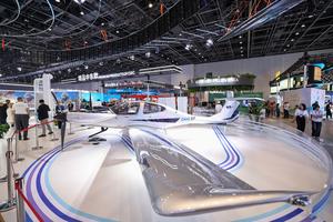 (250523) -- NINGBO, 23 mayo, 2025 (Xinhua) -- Imagen del 22 de mayo de 2025 de una aeronave en la zona de exhibición de Fabricación Digital e Inteligente de los CEEC de la 4 Exposición China-CEEC y Feria Internacional de Bienes de Consumo, en Ningbo, en la provincia de Zhejiang, en el este de China. (Xinhua/Jiang Han) (rtg) (ra) (vf)