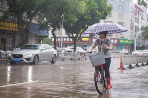 (250729) -- NINGBO, 29 julio, 2025 (Xinhua) -- Una mujer conduce una bicicleta en medio de una fuerte lluvia, en el distrito de Xiangshan de Ningbo, en la provincia de Zhejiang, en el este de China, el 29 de julio de 2025. El tifón Co-May, el octavo tifón de este año, trajo fuertes lluvias al distrito de Xiangshan de Ningbo. Los barcos locales han regresado al puerto para refugiarse y se han suspendido los servicios de ferry. (Xinhua/Jiang Han) (oa) (ah) (ce)