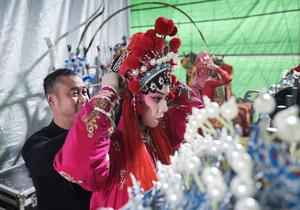 (260203) -- HANGZHOU, 3 febrero, 2026 (Xinhua) -- Imagen del 29 de enero de 2026 de una artista preparándose para presentar Opera Wuju, en la aldea de Meixia, en el distrito de Jinyun de la ciudad de Lishui, en la provincia de Zhejiang, en el este de China. En torno a la Fiesta de la Primavera, las compañías de ópera están ocupadas realizando presentaciones en la zona rural de Zhejiang, creando un ambiente vibrante y festivo. (Xinhua/Xu Yu) (jg) (ra) (vf)
