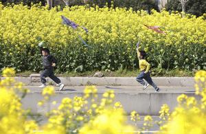 (250326) — DEQING, 26 marzo, 2025 (Xinhua) — Imagen del 20 de marzo de 2025 de niños volando cometas, en el poblado de Qianyuan de la ciudad de Huzhou, en la provincia de Zhejiang, en el este de China. En la provincia de Zhejiang, a medida que sube la temperatura, las personas salen de sus casas para disfrutar de las flores en primavera, mostrando un estilo de vida en armonía con la naturaleza. (Xinhua/Ni Lifang) (jg) (da) (vf)