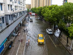 (250730) -- ZHOUSHAN, 30 julio, 2025 (Xinhua) -- Imagen tomada con un dron de un área anegada, en la ciudad de Zhoushan, en la provincia de Zhejiang, en el este de China, el 30 de julio de 2025. Co-may, el octavo tifón de este año, tocó tierra en la provincia oriental china de Zhejiang alrededor de las 4:30 horas del miércoles, informó el observatorio meteorológico provincial. Co-May, cuya fuerza máxima del viento cerca de su centro alcanza los 23 metros por segundo, tocó tierra en la ciudad de Zhoushan. (Xinhua/Jiang Han) (jg) (da) (vf)