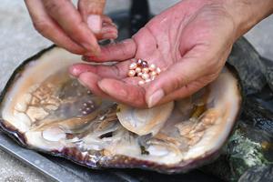 (250810) -- ZHUJI, 10 agosto, 2025 (Xinhua) -- Imagen del 9 de agosto de 2025 de una trabajadora abriendo un mejillón para extraer perlas, en el poblado de Shanxiahu de la ciudad de Zhuji, en la provincia de Zhejiang, en el este de China. El poblado de Shanxiahu de la provincia de Zhejiang es famoso por su industria de perlas que abarca desde el cultivo, el procesamiento y el comercio de perlas hasta el turismo cultural. Shanxiahu ha adoptado innovaciones tecnológicas en los últimos años para impulsar el cultivo ecológico de perlas y el desarrollo sostenible. Este poblado es ahora un importante centro comercial de perlas y una plataforma de comercio de joyas en línea en China, que gestiona el 80 por ciento del volumen comercial de perlas del país, y el negocio de la "economía de la belleza" también ha mejorado considerablemente los ingresos de los hogares de la zona. (Xinhua/Mao Zhu) (oa) (da)