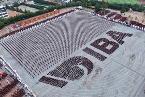 (250827) -- ZHENGZHOU, 27 agosto, 2025 (Xinhua) -- Imagen tomada con un dron el 27 de agosto de 2025 de estudiantes de la Escuela de Artes Marciales Shaolin Tagou formando un logotipo humano de la Asociación Internacional de Boxeo (IBA, por sus siglas en inglés) durante la celebración del Día Internacional del Boxeo organizada por la IBA, en Dengfeng, en Zhengzhou, en la provincia de Henan, en el centro de China. (Xinhua/Li Jianan) (ah) (ra) (ce)