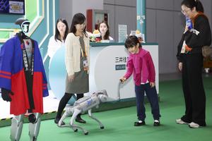 (251109) -- SHANGHAI, 9 noviembre, 2025 (Xinhua) -- Una niña interactúa con un perro robótico en el área de Exposición de Comercio de Servicios durante la VIII Exposición Internacional de Importaciones de China (CIIE, por sus siglas en inglés), en Shanghai, en el este de China, el 9 de noviembre de 2025. El Area de Exposición Comercial de Servicios de la CIIE de este año se centra en la integración de recursos, atrayendo a los principales proveedores de servicios mundiales y clústeres industriales, al tiempo que impulsa el desarrollo coordinado y abierto de los sectores de servicios y manufactura. Esto genera servicios de apoyo más especializados que ofrecen a las empresas nuevas oportunidades de crecimiento compartido. (Xinhua/Wang Xiang) (rtg) (da)