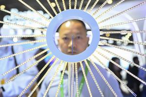 (251107) -- SHANGHAI, 7 noviembre, 2025 (Xinhua) -- Un hombre observa una pieza expuesta en el estand de Medtronic, un participante desde hace ocho años en la Exposición Internacional de Importaciones de China (CIIE, por sus siglas en inglés), durante la VIII CIIE, en Shanghai, en el este de China, el 7 de noviembre de 2025. Entre los participantes a la VIII CIIE, 170 empresas y 27 instituciones han mantenido una asistencia completa a la CIIE durante ocho años consecutivos, lo que refleja el firme compromiso de China con una apertura de alto nivel. (Xinhua/Chen Haoming) (jg) (rtg) (ce)