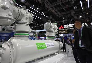 (251106) -- SHANGHAI, 6 noviembre, 2025 (Xinhua) -- Visitantes observan un interruptor de circuito libre de SF6 de Hitachi, que hizo su debut en China, durante la Exposición Internacional de Importaciones de China (CIIE, por sus siglas en inglés), en Shanghai, en el este de China, el 6 de noviembre de 2025. Muchos expositores presentaron sus últimos productos en la VIII CIIE de Shanghai. (Xinhua/Fang Zhe) (jg) (ah) (da)